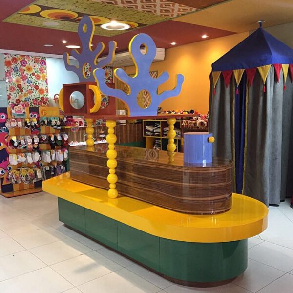 O designer de interiores Vinícius Morais criou um ambiente lúdico e muito vibrante ao decorar um comércio situado na avenida Hugo Musso, em Vila Velha. As cores são o grande destaque do espaço, que reúne um salão infantil, serviço de manicure e estética para as mães, lanchonete e butique de moda infantil.