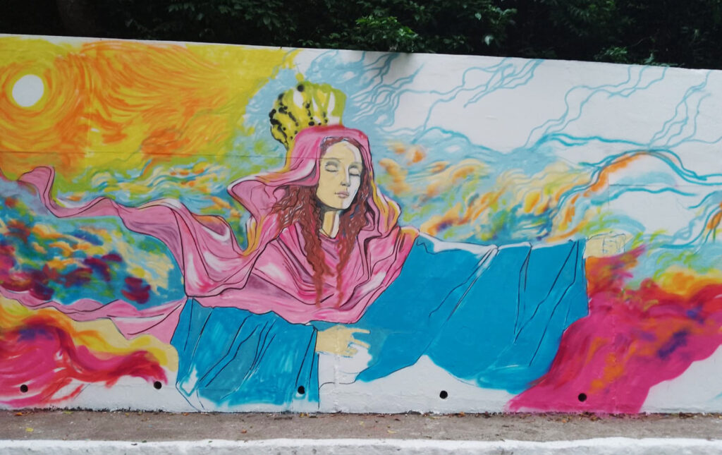 A gente ama levar mais cor e alegria para a vida das pessoas. E, desta vez, vamos colorir parte do caminho dos romeiros que vão participar do maior evento religioso do Espírito Santo: a Festa da Penha.A emoção vai bater mais forte assim que os visitantes entrarem pelo portão principal do Convento. É que o muro que dá acesso à ladeira ganhou novas cores e significados através das mãos talentosas de três artistas capixabas que transformaram paredes em verdadeiras obras de arte.O painel está lindo, traz todas as cores do nosso Estado, e vai recepcionar de braços abertos os romeiros que farão suas homenagens a Nossa Senhora da Penha.