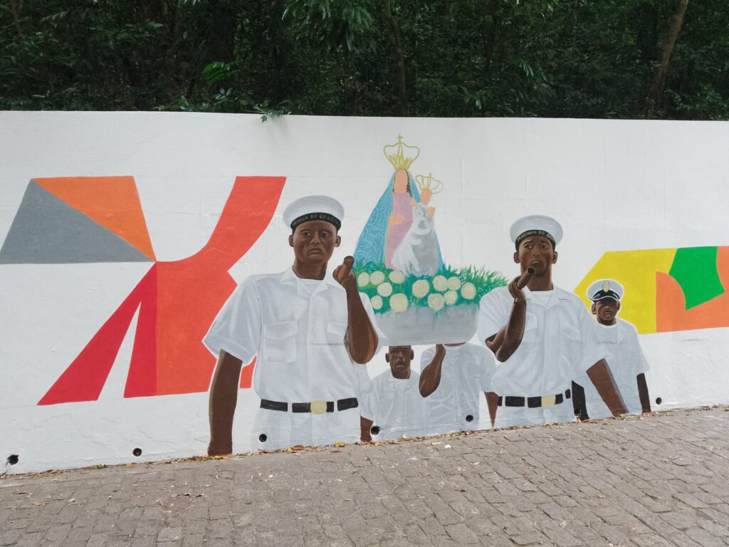 Roger Di Araujo, autodidata nascido em Vila Velha, utilizou a técnica arte mural para retratar as romarias dos Militares e dos Conguistas. Já o artista conceitual Rodolpho Valdetaro usou técnica mista para retratar a Mãe das Alegrias, como também é conhecida a padroeira do Espírito Santo.