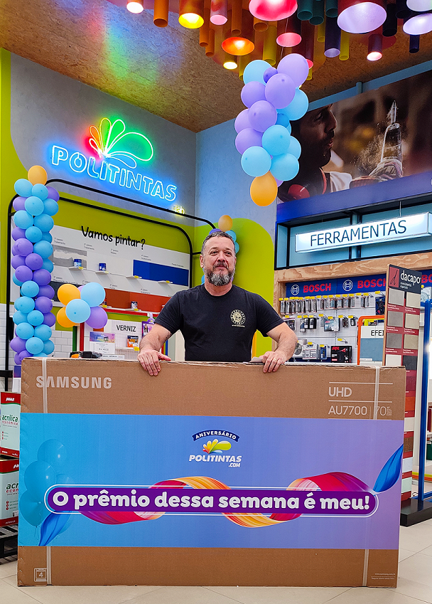 O Alberto Santos Arndt, que também comprou produtos para renovar o visual do lar doce lar na Politintas, é o outro cliente sortudo da semana que ganhou uma super TV.