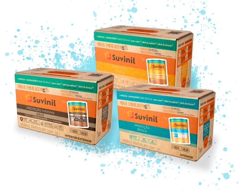 Com formato ergonômico, a nova embalagem tem a mesma quantidade de um galão, que são 3,6 litros, e está disponível em três opções de vernizes: Suvinil Proteção Básica, Suvinil Proteção Tripla e Suvinil Proteção Máxima Deck.